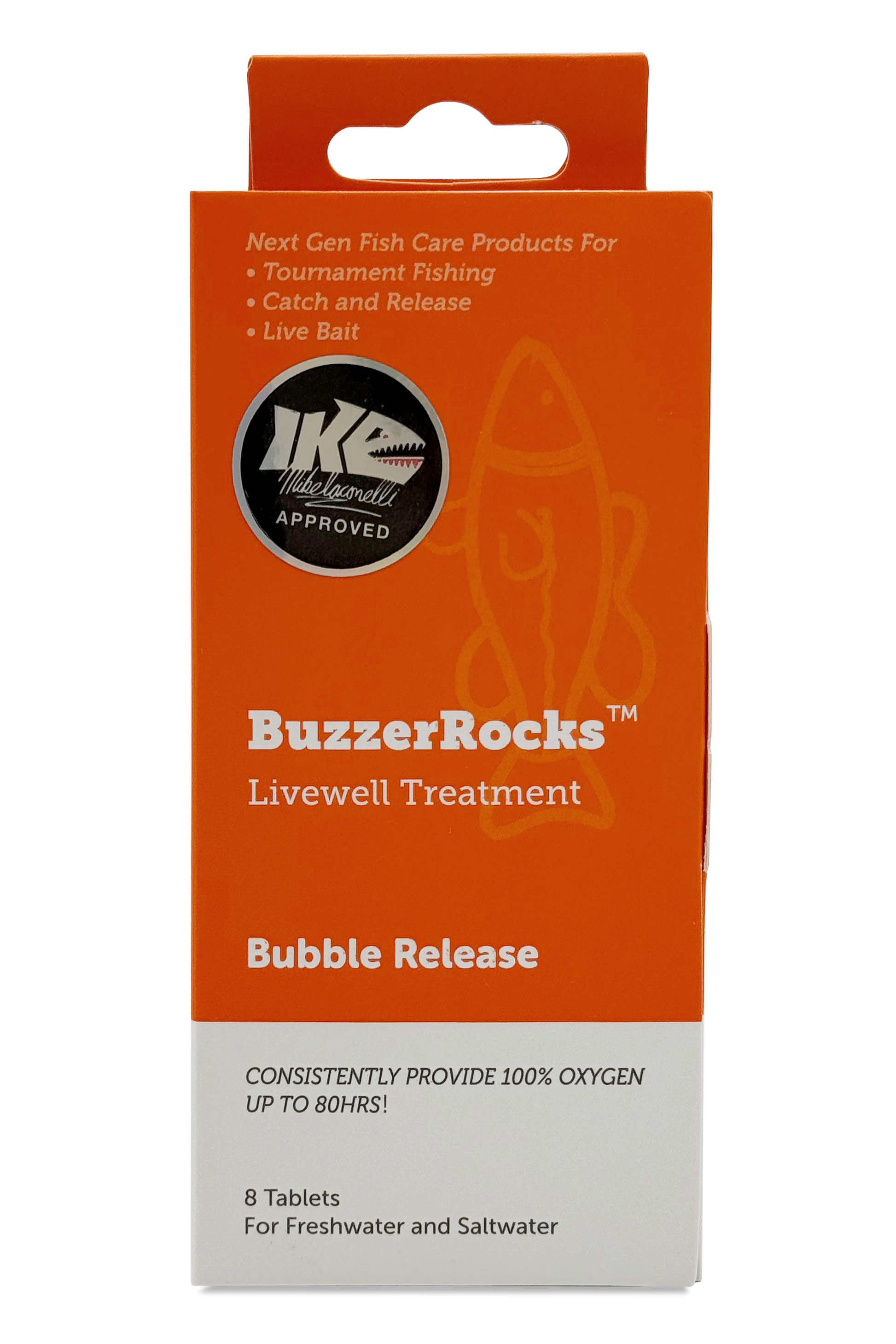 Significantly increase Dissolved Oxygen levels in your livewell water and help stressed fish get the oxygen they need to prevent potential mortality issues. The Bubble Release pill effectively increases the Dissolved oxygen level in the water with extended-release dosage for up to 10 hrs per tablet, while keeping the nitrate and ammonia levels in the water low. This formula will keep your fish alive and healthy in your livewell while you focus on catching more fish!